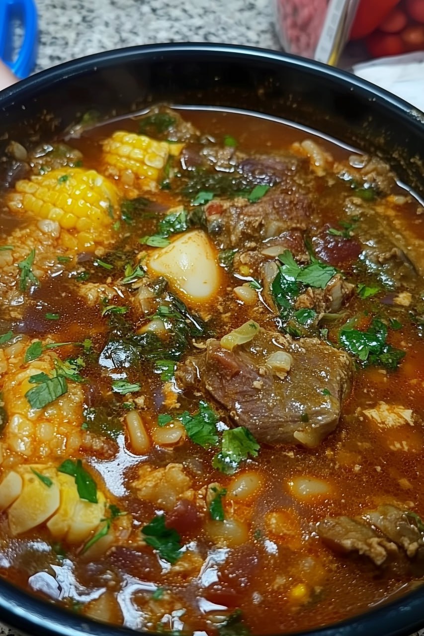 A classic Mexican beef-and-chile stew with a bright, charred tomato-chile broth, tender beef shank, corn, and calabacita. Hearty, fragrant, and perfect with warm tortillas.